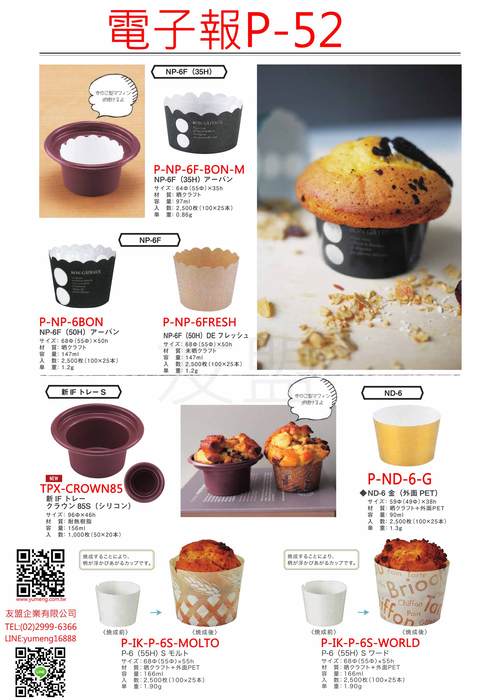 商品名稱:日本烘焙包裝材料-杯子蛋糕烘烤紙杯P52