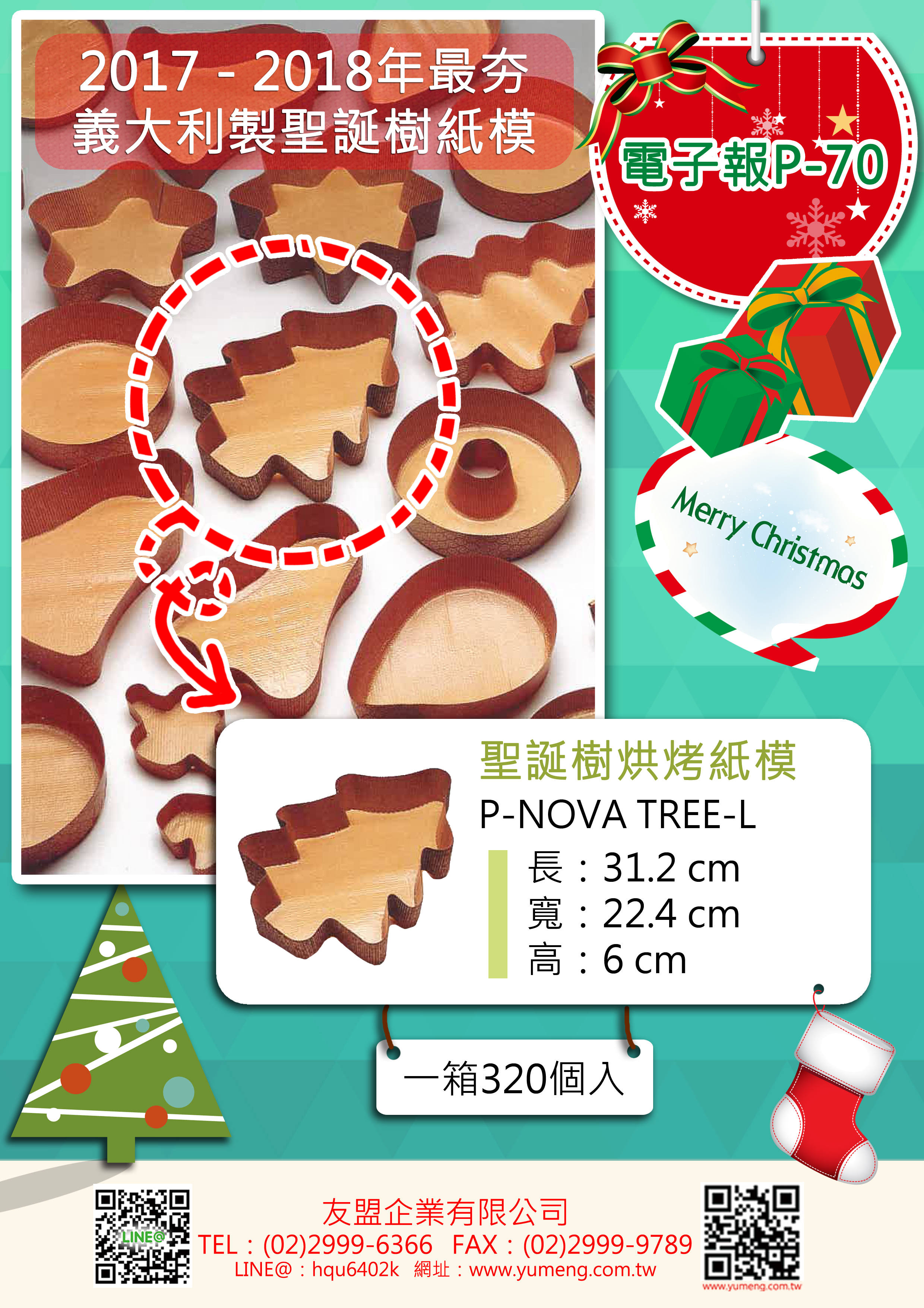 精緻美觀,濃厚佳節氣氛。適合各式潘娜朵尼,戚風蛋糕,義大利水果麵包。